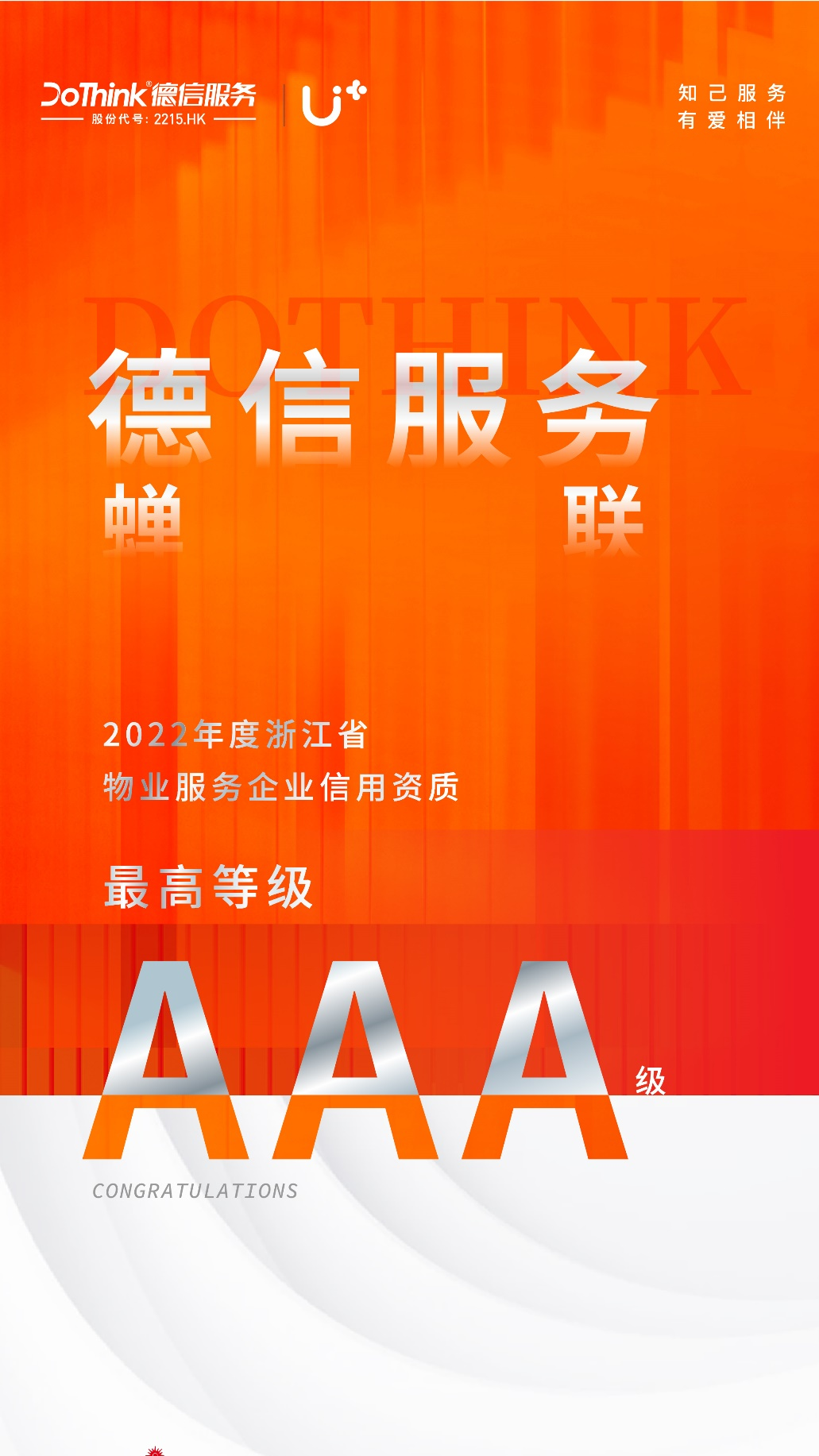 德信服务以良好的信用状况、优质的服务水平蝉联入选浙江省最高等级“AAA”级物业服务信用企业名单。