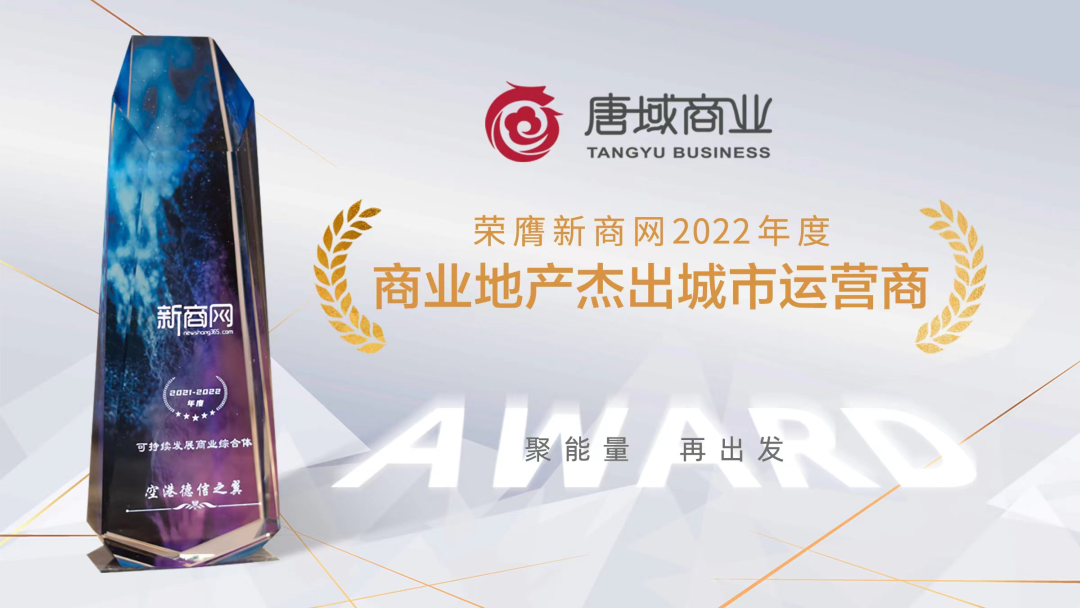 近日,由两大商业巨头——联商网主办的“2022年度华东商业年会”及新商网主办的“2022年度商业地产峰会”分别落下帷幕。唐域商业凭借过硬实力,披荆斩棘,从众多商业运营商中脱颖而出,分获联商网2022年度杰出商业运营商、新商网2022年度商业地产杰出城市运营商,旗下空港德信之翼项目斩获新商网2021-2022年度可持续发展商业综合体,共计三项重磅大奖!