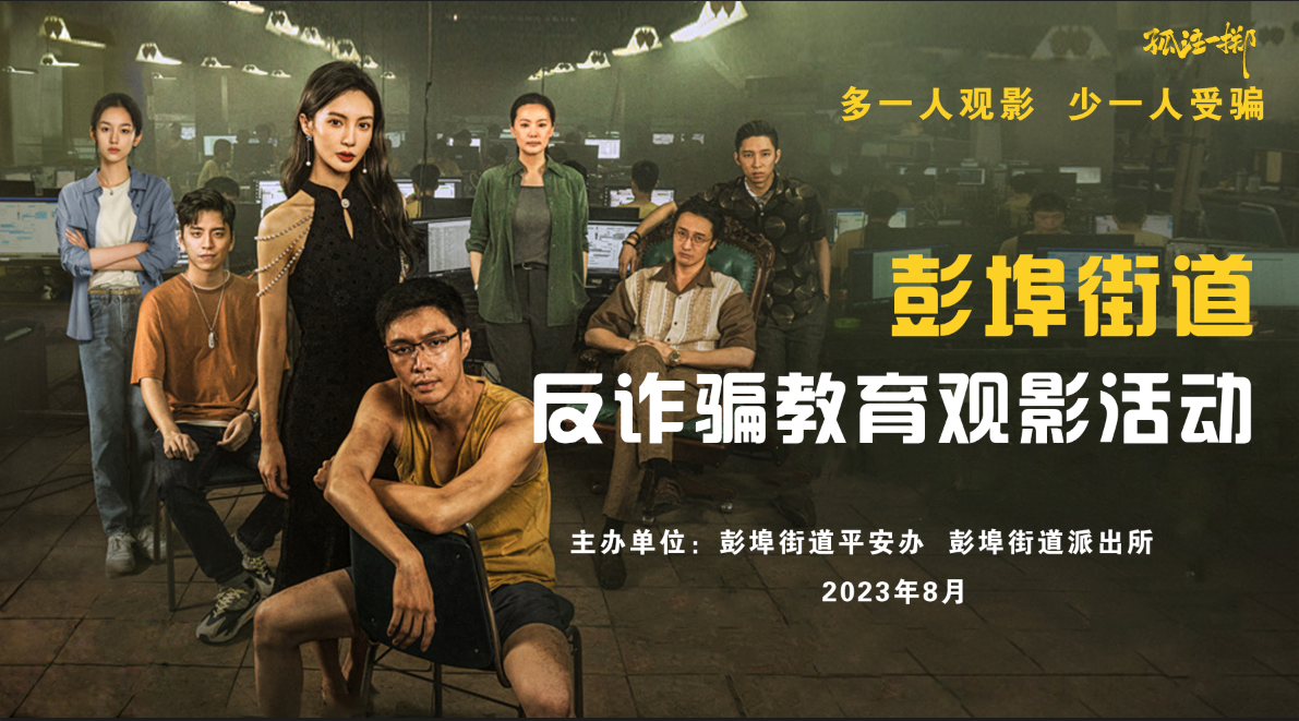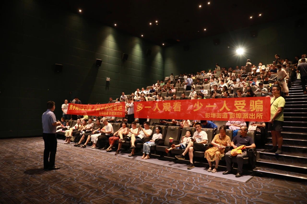 8月20日,彭埠街道平安办、彭埠街道派出所联合德信影城组织“彭埠街道反诈骗教育观影活动”,邀请众多社区群众免费观看反诈电影《孤注一掷》。电影厅内,民警为每位观影群众发放反诈宣传资料,宣讲电信诈骗案例,提醒广大群众增强反诈意识,共筑“反诈”防火墙!